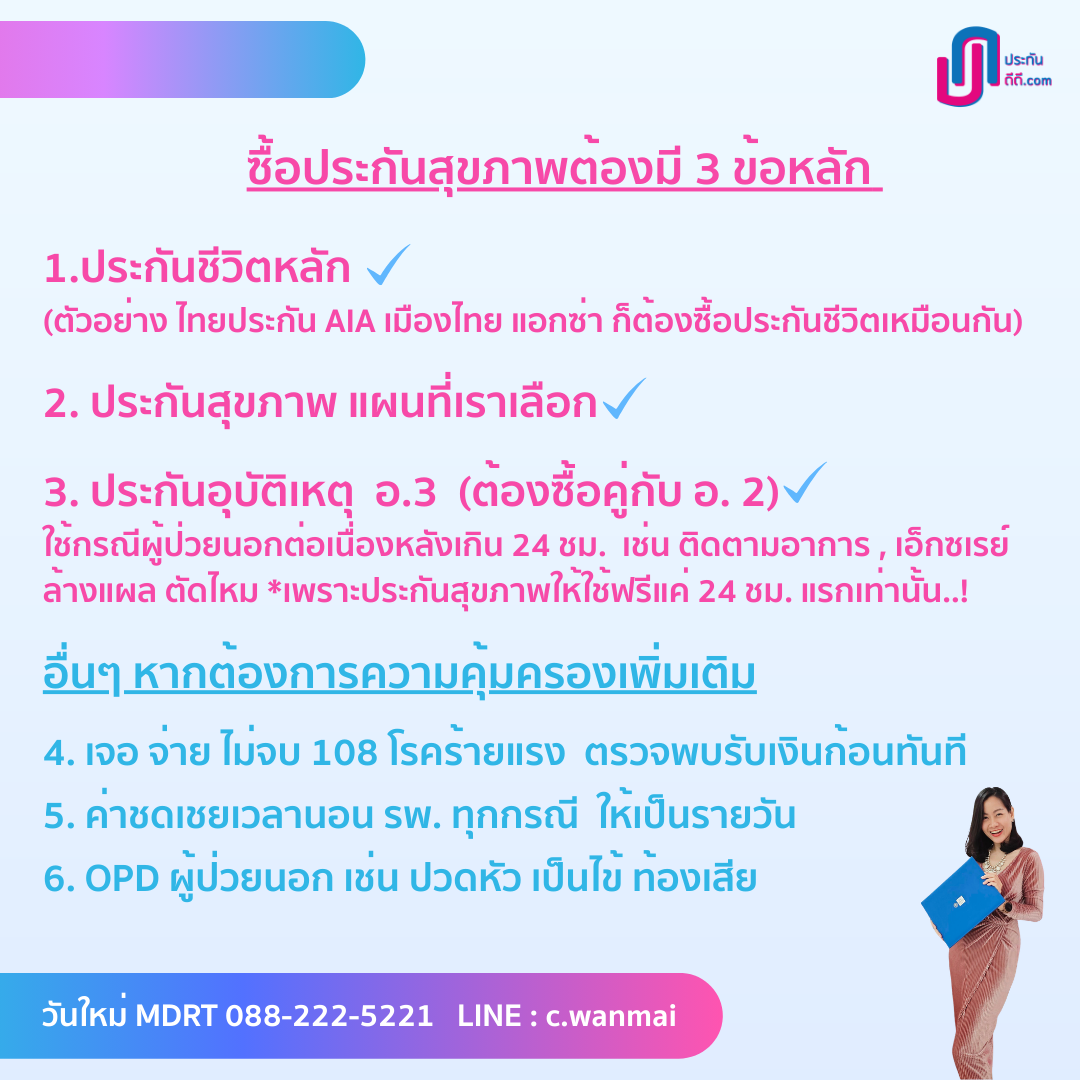 ซื้อประกันสุขภาพต้องมี 3 ข้อหลัก