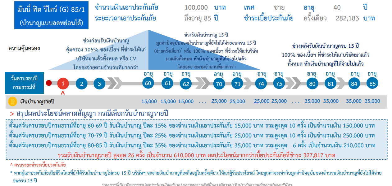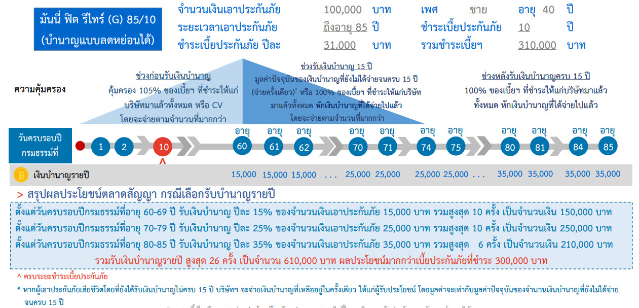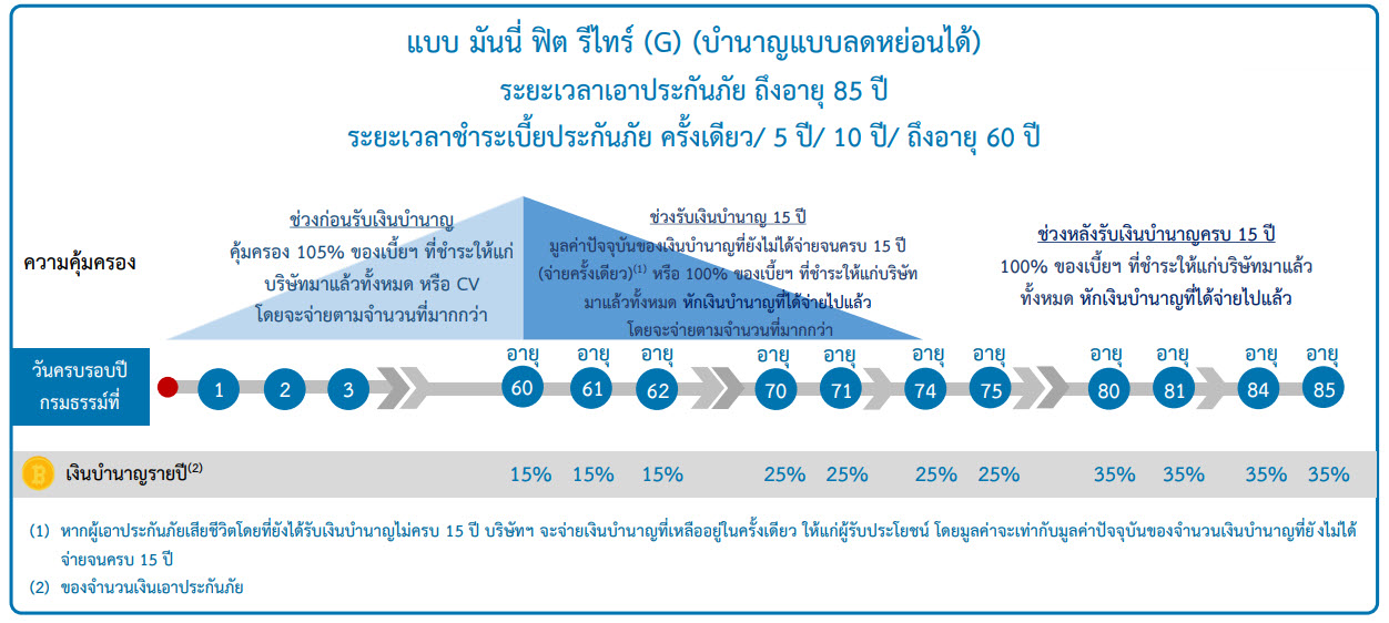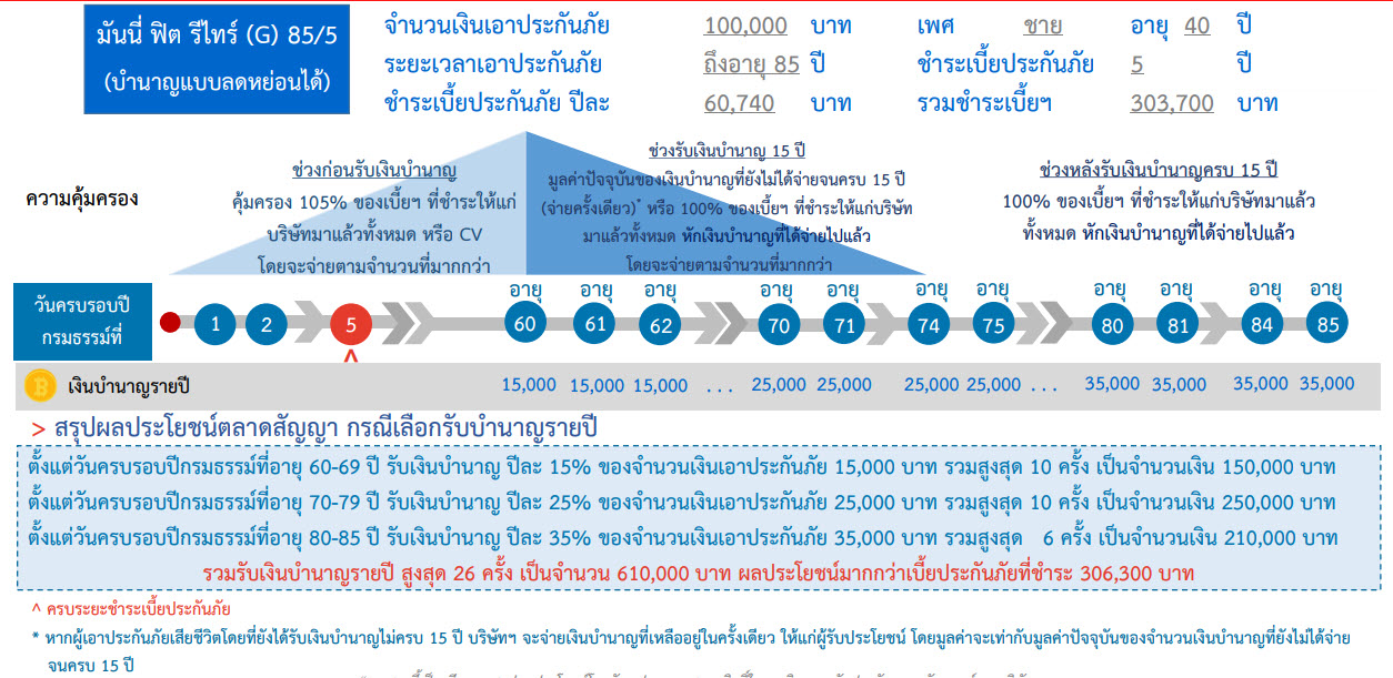 เริ่มรับบำนาญตั้งแต่ วันครบรอบปีกรมธรรม์ที่อายุ