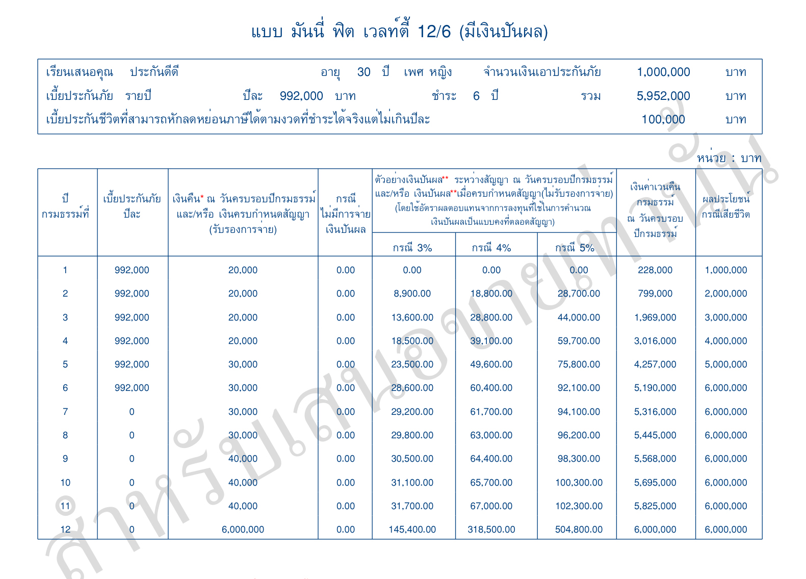 เงินคืน (รับรองการจ่ายเงิน) + เงินปันผล (ไม่รับรองการจ่ายเงิน)