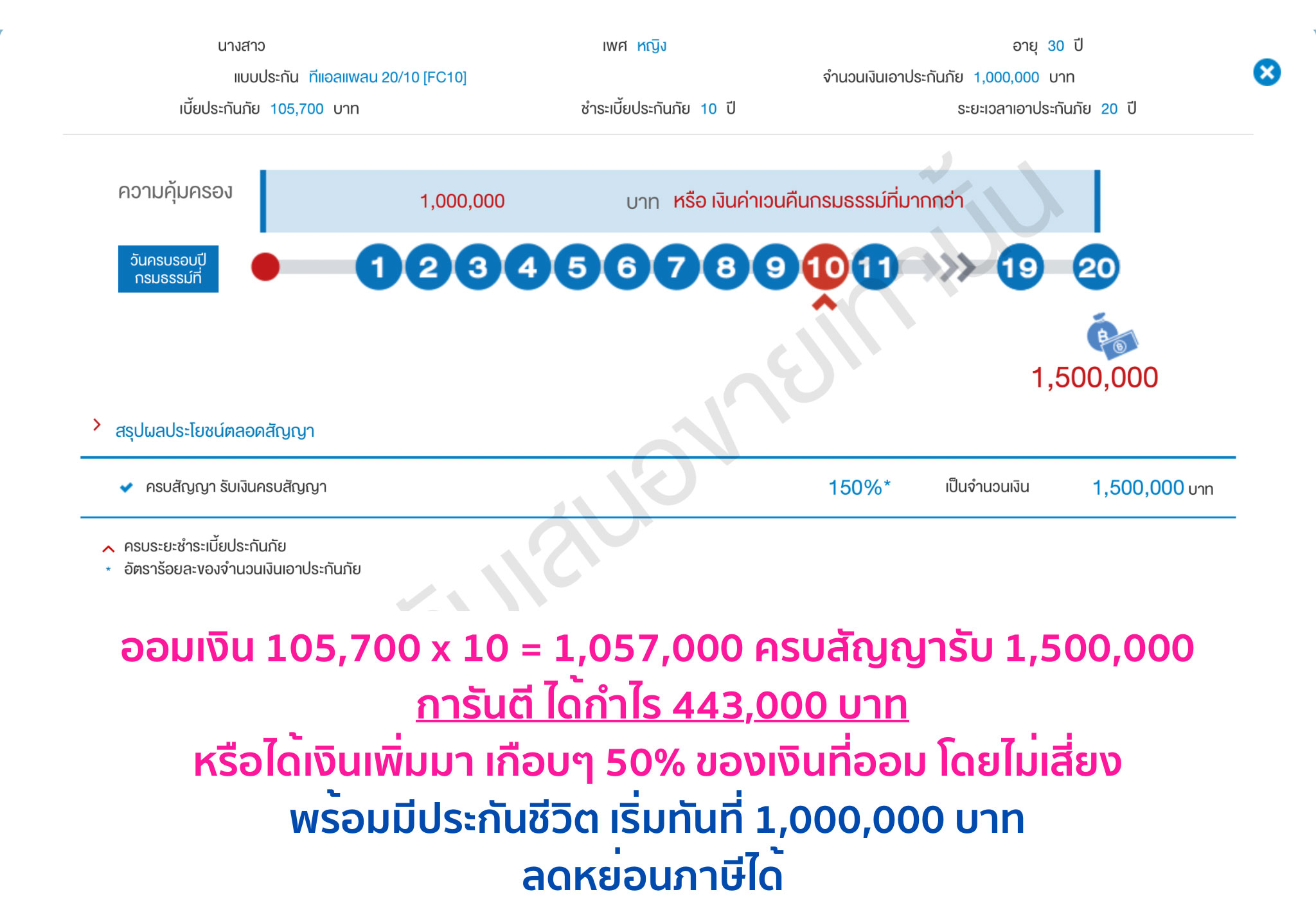 ตัวอย่าง ผู้หญิง อายุ 30 ปี ทุนประกัน 1,000,000 บาท